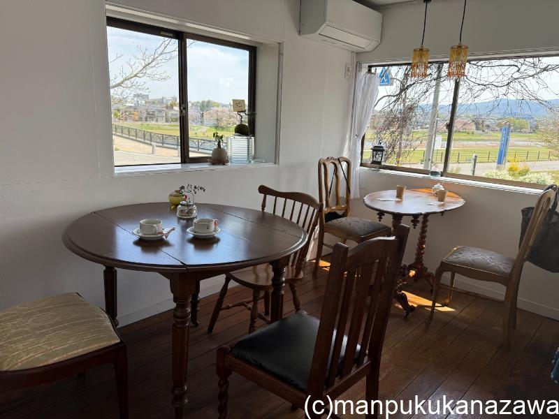 それぞれの席で異なるアンティークのテーブルやイスがステキで、北欧のカフェみたいな?