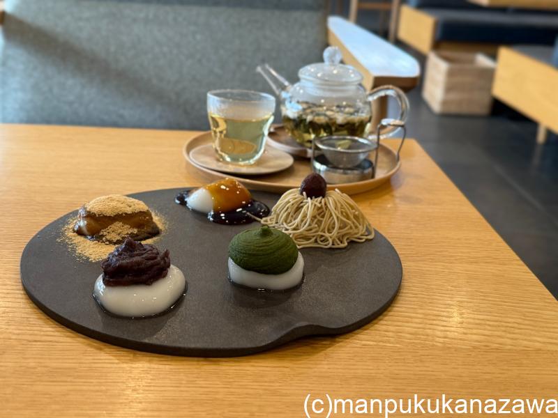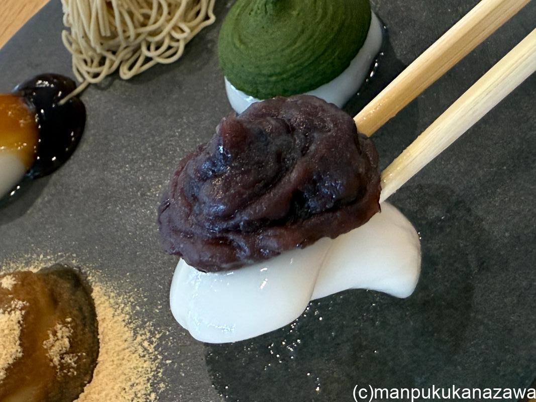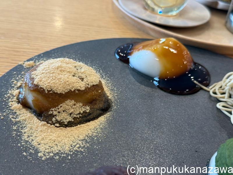 5種類のフレーバーの食べ比べができるプレートには、みたらしにきなこ。