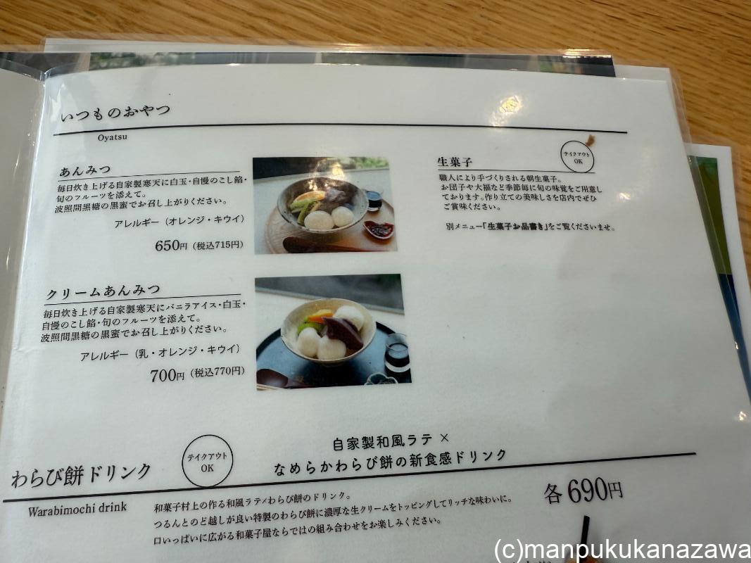 | 住所 | 石川県金沢市泉本町1-4(和菓子村上 本社店 店舗内併設) |