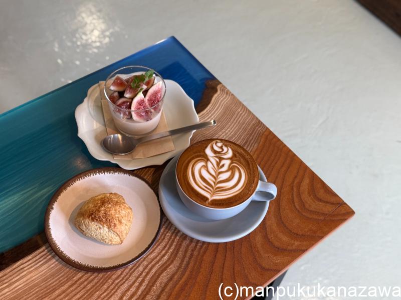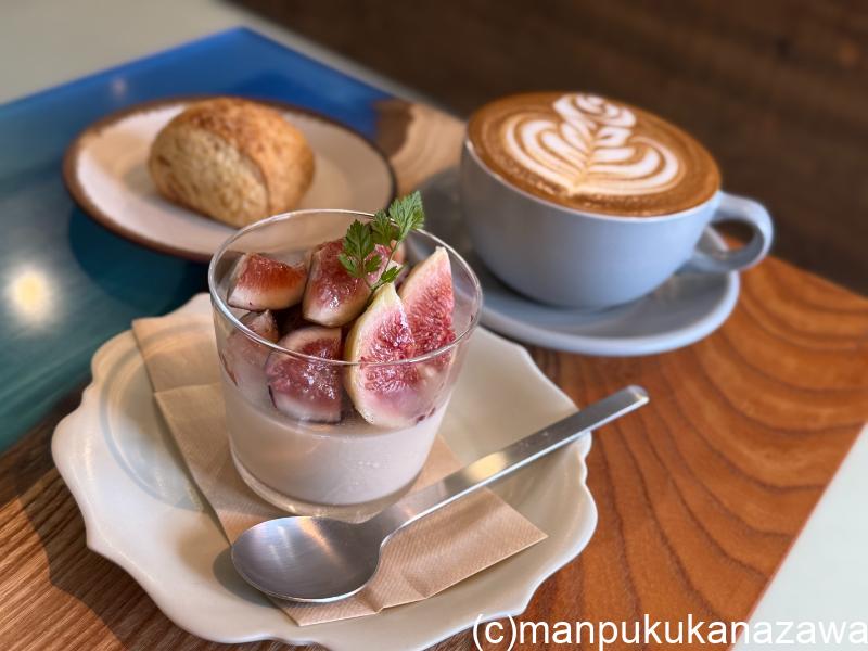 さっそく「フレッシュいちじくのパンナコッタ」(750円)、「シナモンスコーン」(370円)、「カフェラテ」(600円)を注文。