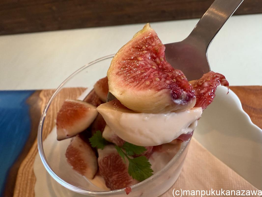 パンナコッタはオーツミルクとよつ葉乳業のクリームチーズで仕上げられていて、ちょっとコクがあってチーズの風味がすごくいちじくに合う!