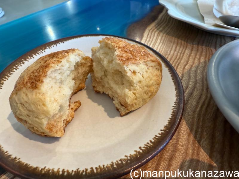 スコーンも素朴な味わいで、ほどよいシナモンの風味にやさしい甘さ。