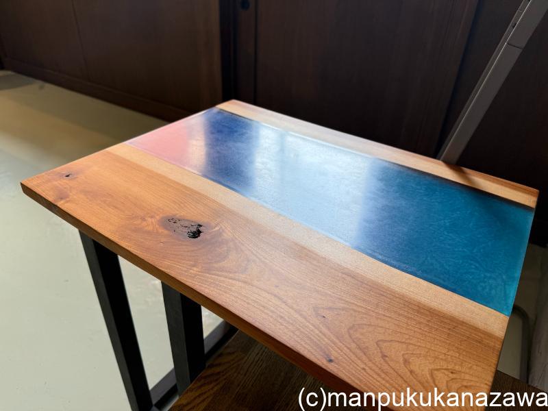 テーブルも木とレジンを組み合わせたオリジナル作品。ステキやわ~