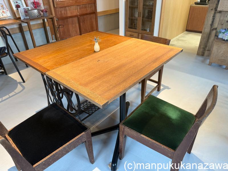 古道具やアンティークの家具やテーブルが並んでいて、どこか懐かしいような落ち着く空間です。
