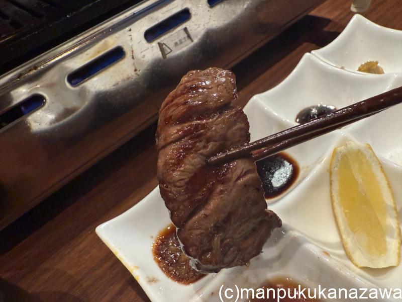 極上タンは柔らかでジューシーで、じゅわっと旨みとネギの風味が広がる!