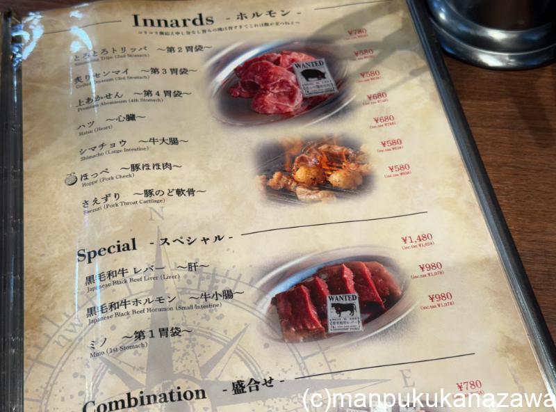 A5ランク黒毛和牛や能登牛をリーズナブルに楽しめるのが魅力で、バラエティに富んだメニューが揃っています。