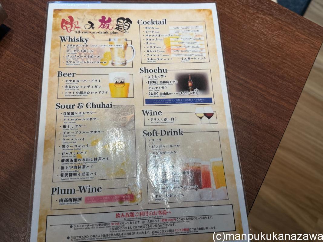 なんと2時間の飲み放題付きで6,000円!!
