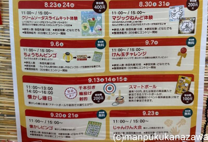 9月の3連休には、射的や千本引き、輪投げなど、懐かし商品がもらえる懐かし縁日コーナーも登場するよ!
