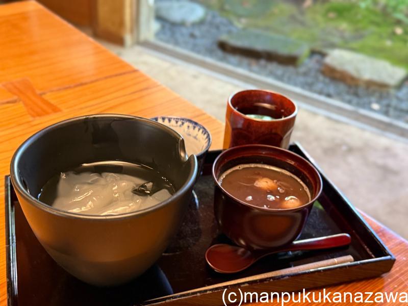 わたしは「本くずきり&小豆ぜんざいセット」を注文。