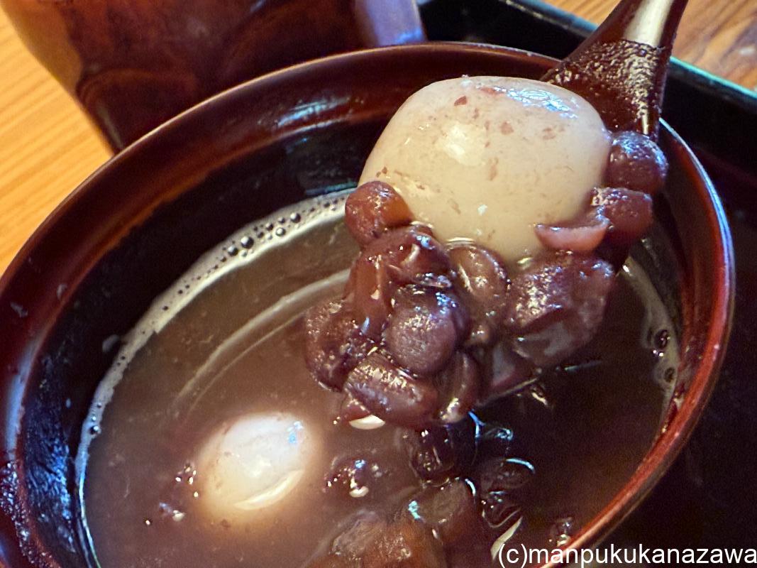 ぜんざいは温かいものと冷たいものを選ぶことができます。わたしは温かいのを!