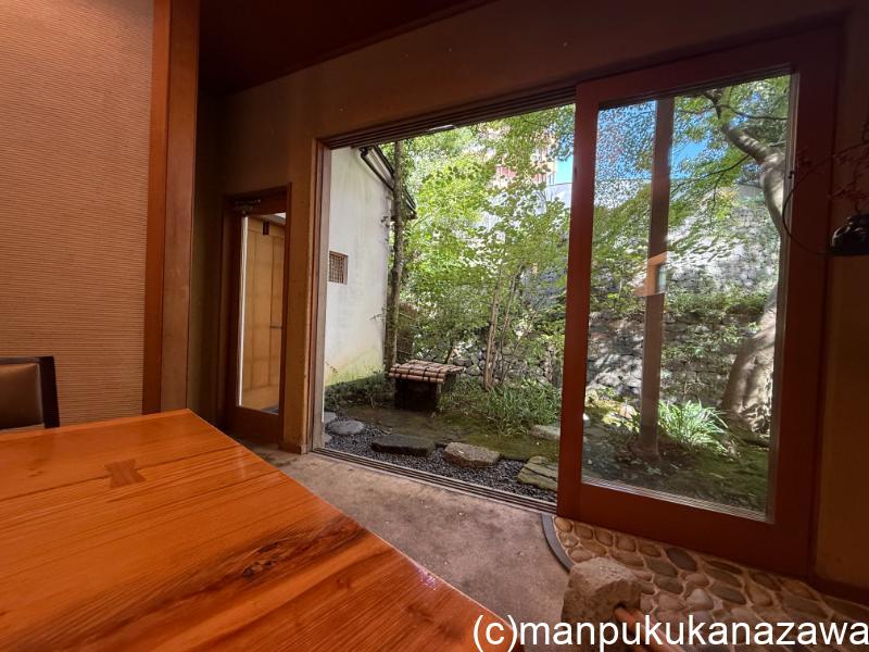 すぐそばには、辰巳用水が流れていて、窓からは金沢城の石垣をバックに緑の木々を眺めることができます。