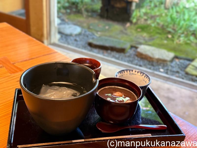わたしは「本くずきり&小豆ぜんざいセット」を注文。